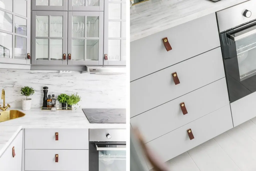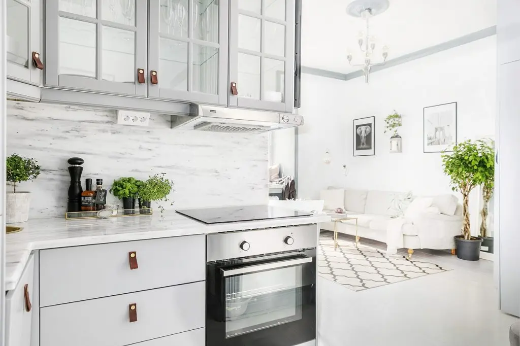 Dulapurile suspendate cu usi din sticla permit o depozitare creativa.