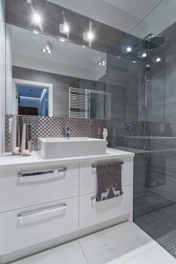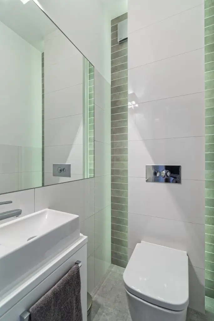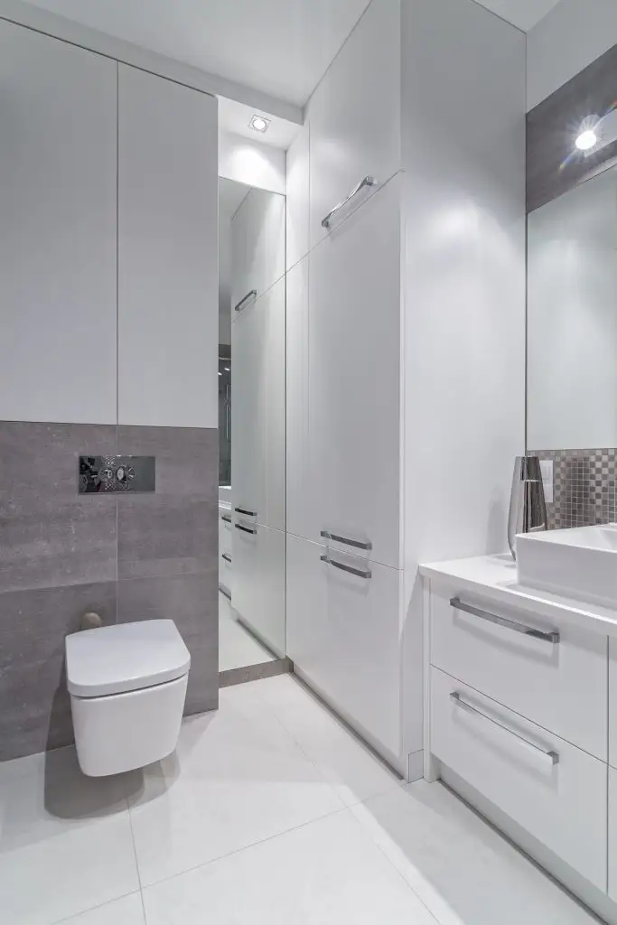 De cealalta parte a holului, gasim principala zona de depozitare a locuintei sub forma unui dressing inalt pana in tavan, cu usi glisante, acoperite cu oglinzi.
