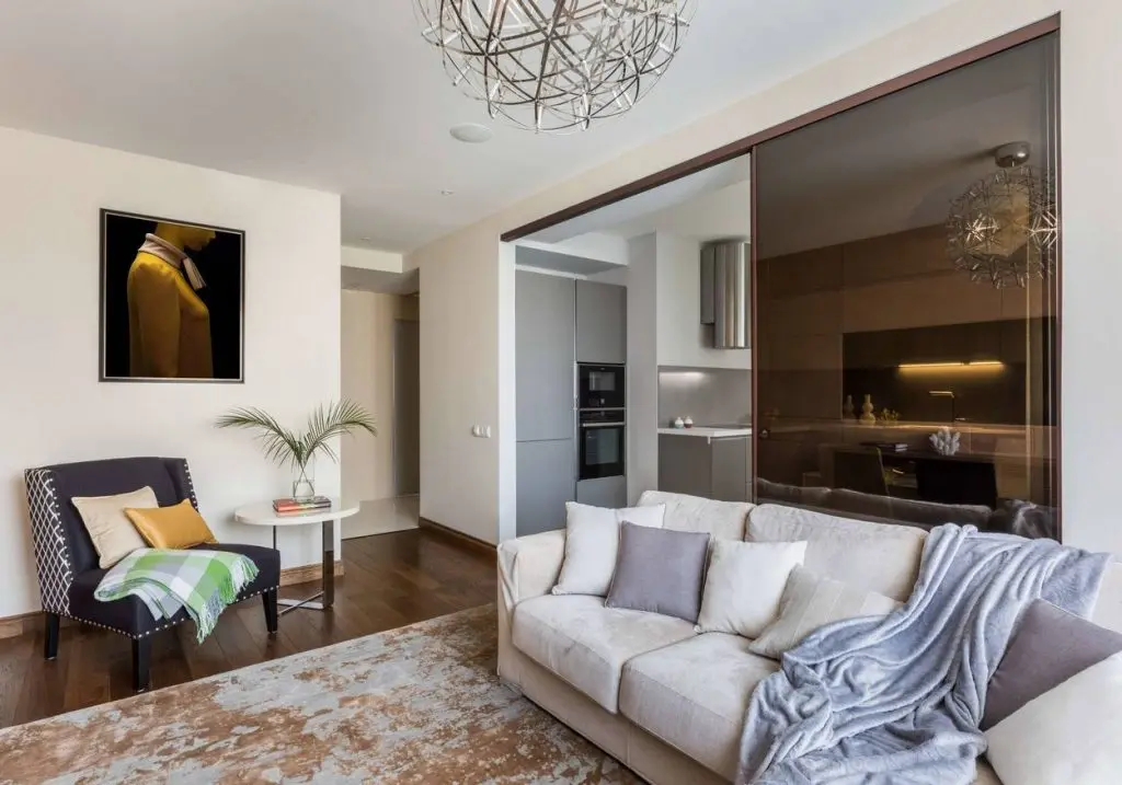 S-a dorit o deschidere a spatiilor, cu o zona de zi care sa includa living si bucatarie. Astfel, a fost creata o partitie din sticla fumurie intre cele doua functiuni care se poate inchide atunci cand se gateste. Deschisa, camera de zi si bucataria par sa formeze un tot unitar.