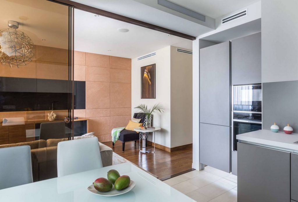 S-a dorit o deschidere a spatiilor, cu o zona de zi care sa includa living si bucatarie. Astfel, a fost creata o partitie din sticla fumurie intre cele doua functiuni care se poate inchide atunci cand se gateste. Deschisa, camera de zi si bucataria par sa formeze un tot unitar.