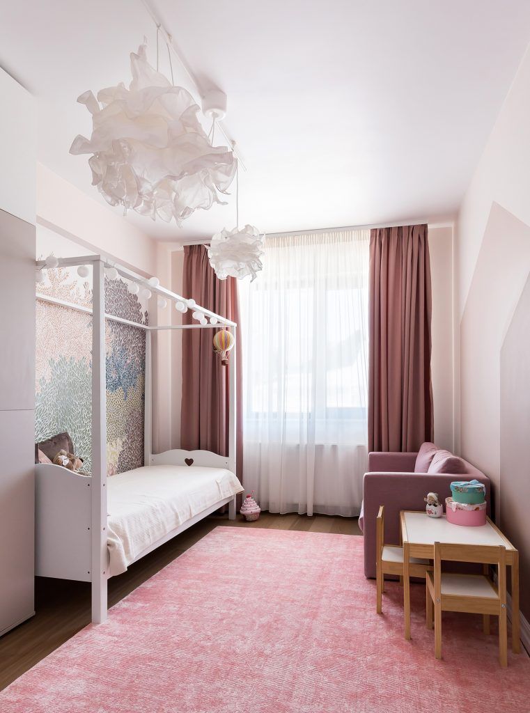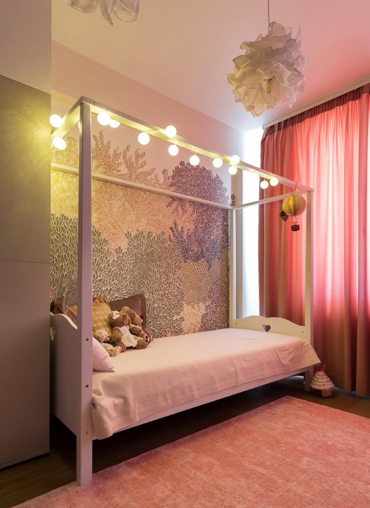 In camera copilului, dominata de o atmosfera ludica, luminoasa si plina de culori vii, au integrat armonios un perete interactiv, format dintr-un tapet magnetic finisat cu vopsea lavabila de tipul tablei de scris cu creta. Decorarea patului cu globuri de lumini insiruite de-a lungul baldachinului creeaza o atmosfera de poveste si asigura un iluminat secundar relaxant.