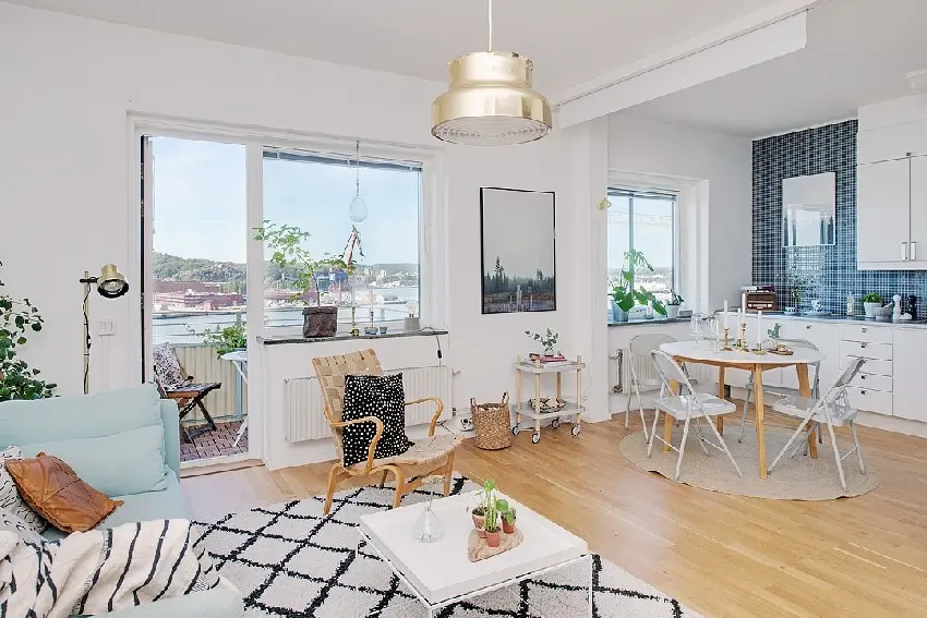 Cu vedere spre rau si port, acest apartament de 42 de metri patrati din Gothenburg, Suedia, se poate spune ca ofera din punct de vedere vizual un grad ridicat de liniste si calm. Acesta ilustreaza cum nu se poate mai bine stilul scandinav, dominat de contrastul dintre geometria cursiva a liniilor si caldura oferita de folosirea albului si de nuanta echilibrata a lemnului.