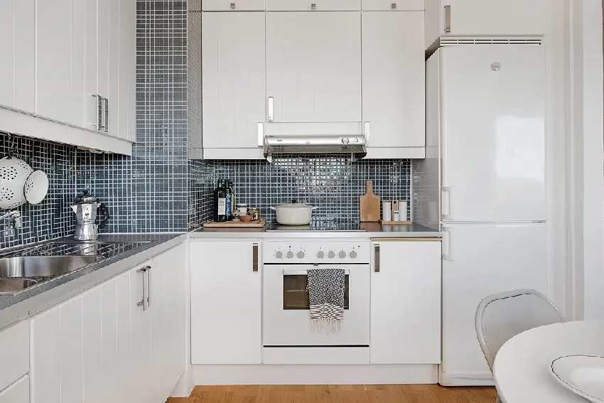Peretele dintre bucatariesi camera de zi a fost deschis, cu scopul de a crea senzatia de spatialitate. Gresia gri si usile albe ale dulapului da bucatarie ofera un caracter grafic puternic, creand un contrast placut.