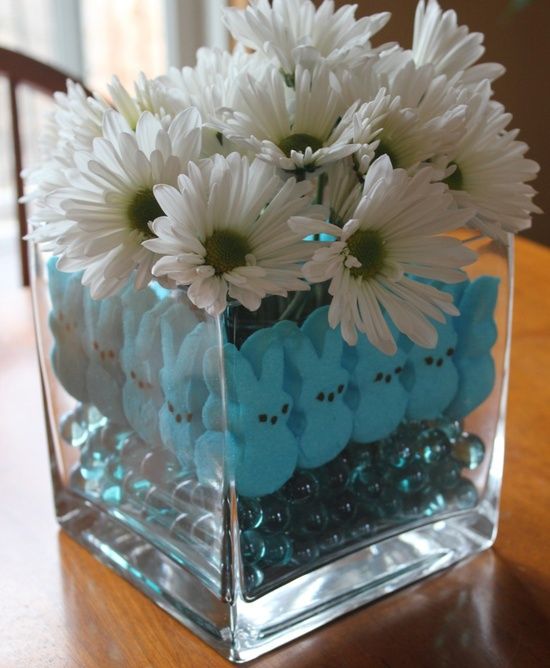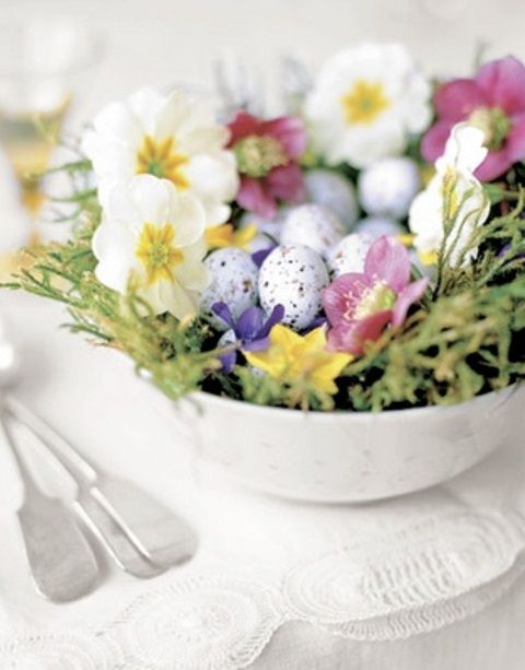 O alta idee este sa creati un aranjament cu flori si oua vopsite pe care sa il asezati pe masa in zilele de Paste. Puisorii pufosi, galbeni pot completa acest tablou simpatic. Fiti creativi si utilizati recipiente de orice fel, bol, vaza, ghiveci, o stropitoare (pentru un aranjament mai complex).