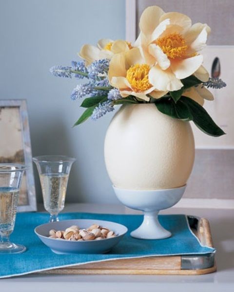 Daca va place sa mestesugariti, puteti sa va realizati dumneavoastra acasa propriile aranjamente florale. Puteti folosi coaja de ou pentru micile plante suculente. Cofrajul de oua poate fi folosit si el intr-un mod original, adaugand cateva plantute si mici bucati de licheni pentru un aspect proaspat.