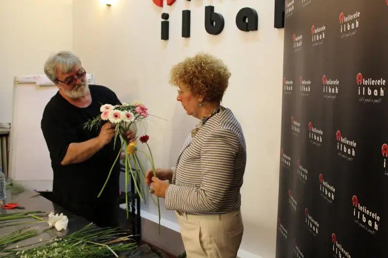 Imagine de la workshopul de design floral sustinut cu o zi inainte, 27 mai, de maestrul florist Nicolae Agop