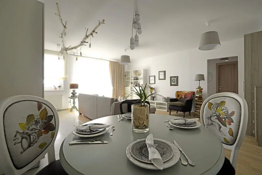Apartamentul dezvolta armonios conceptul locuitului intr-un spatiu compact cu senzatia de aer liber. Astfel, au fost integrate culori, materiale subtile, ludice care sa duca cu gandul la natura, creand in acelasi timp un spatiu optimizat cu toate functiunile de care ai nevoie pentru o locuire confortabila si comoda.