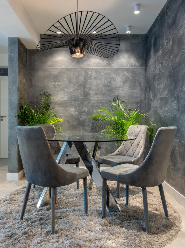 Deschide GaleriaIn ceea ce priveste repartizarea camerelor, open space-ul incorporeaza trei spatii de interes: living, zona de dining si bucatarie. Omogenitatea estetica face posibila o stransa legatura si o continuitate intre zone. Vorbim in acest caz de o paleta coloristica bazata pe nuante derivate de gri, texturi de catifea si accente glossy de auriu si argintiu, la care se adauga detalii de verde natural prin accesorizarea cu plante decorative.