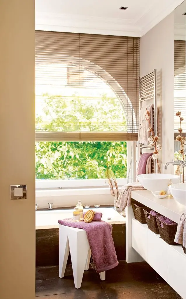 Deschide GaleriaCu totii iubim camerele luminoase, ferestrele mari prin care patrunde lumina atat de benefica a soarelui. Te poti considera norocos daca baia ta poate beneficia de o suprafata vitrata generoasa si mai ales de un spatiu decent. Prima din aceste amenajari beneficiaza de o ampla fereastra unde a fost amenajata sicada. Restul detaliilor aproape ca nici nu mai conteaza.