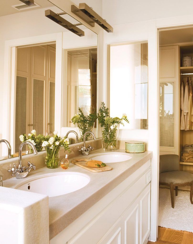 Sa ai o experienta de spa chiar la tine in baie? Iata cum poate fi posibila intr-o amenajare. Spatiul dedicat imbaierii este despartit de un panou. Lavoarul suspendat, doua chiuvete, o oglinda supradimensionata si iata o amenajare pur si simplu superba.