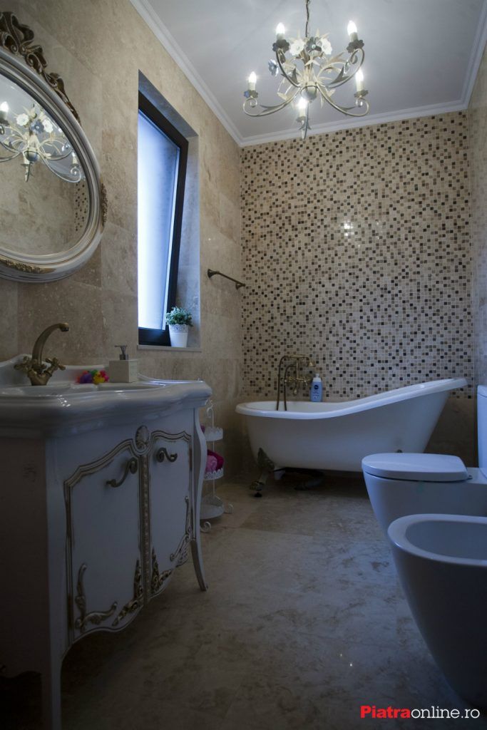 Deschide Galeria Andreea Piti, client piatraonline.roa facut singura design-ul bailor din casa familiei ei. Si-a dorit un stil clasic si a creat amenajare baie pornind de la directia de stil a intregii case: clasic, simplu, cu accesorii si elemente care sa dea farmec spatiilor: “M-am documentat foarte mult, am vazut tot felul de ambienturi si faptul ca am vrut piatra naturala m-a dus din start in zona asta eleganta. Dupa documentare, am ales efectiv ce mi-a placut, in functie de buget. Am si lucrat cu un consultant de la Piatraonline, am fost de nu stiu cate ori in showroom”, spune Andreea.