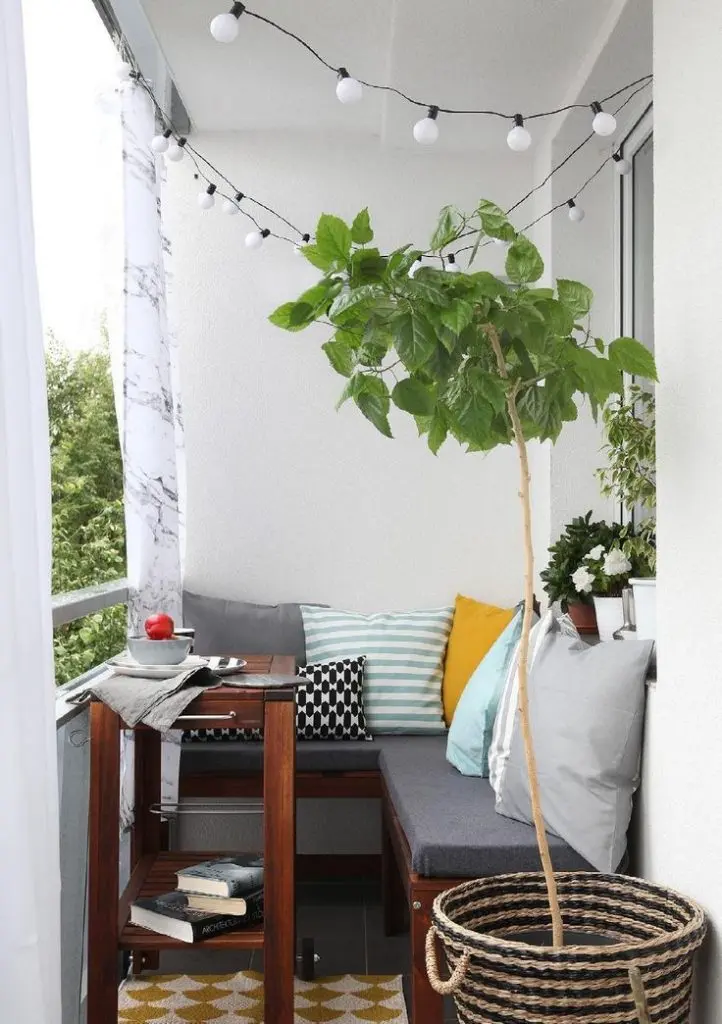 Daca detii un balcon mic nu inseamna ca trebuie sa renunti la confort. Te salveaza o canapea pufoasa si pernelecare te vor face sa te simti ca minunat in serile racoroase de vara. Poti potenta atmosfera adaugand lumanari pentru o lumina difuza si primitoare.