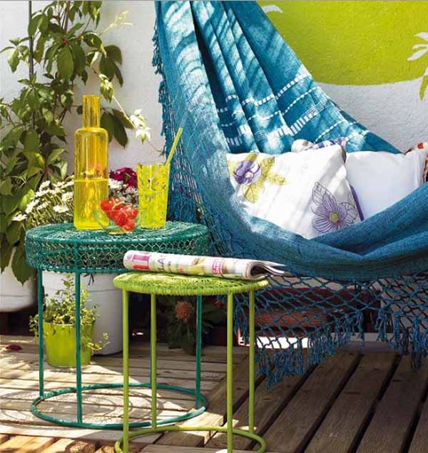 Hamacele colorate si-au facut cu succes loc pe bacon si e adevarat ca te simti ca in vacanta atunci cand te relaxezi intr-unul. Completeaza decorul cu obiecte de mobilier la fel de colorate, realizate din materiale naturale si ai obtinut propria oaza de buna dispozitie.