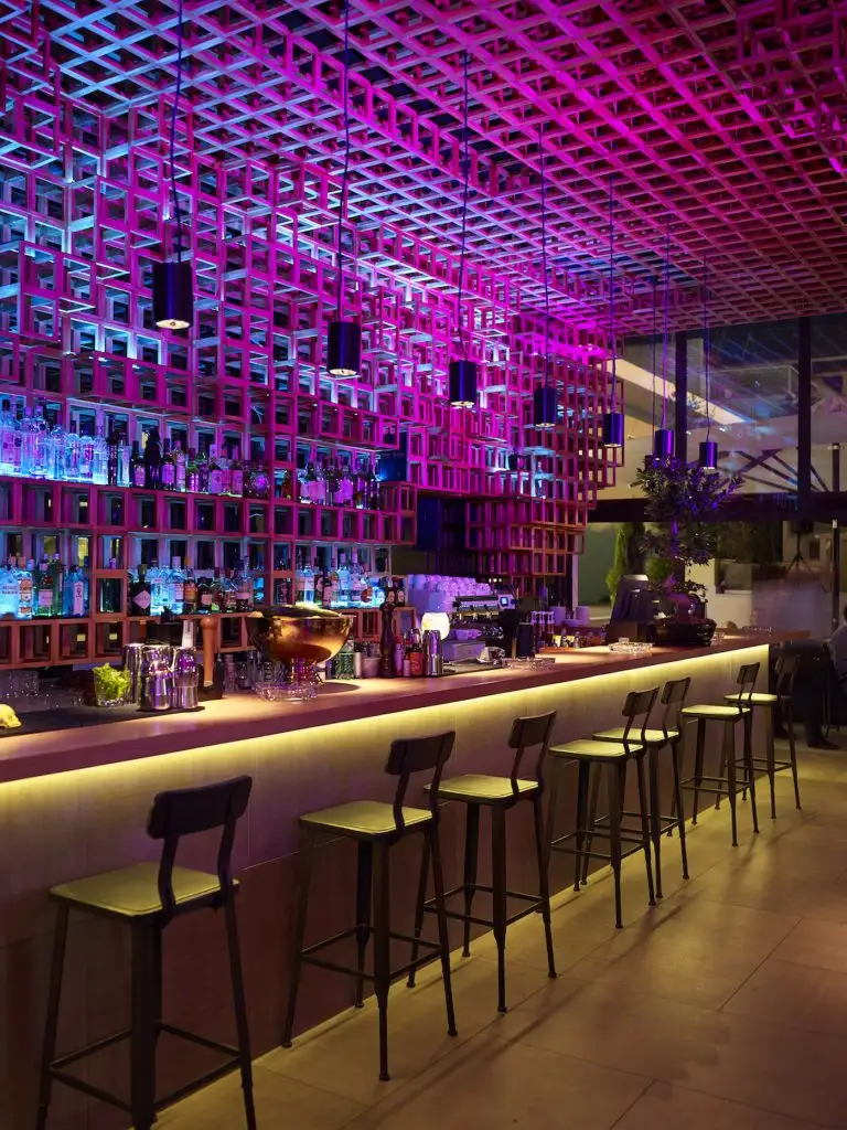 Situat in shopping center-ul Mela, pe o suprafata de 400 de metri patrati, constructia este considerata a fi un punct de reper in materie de design de interior; barul-restaurant este unic in materie de estetica; specificul este un fusion inedit intre bucatariile internationale.