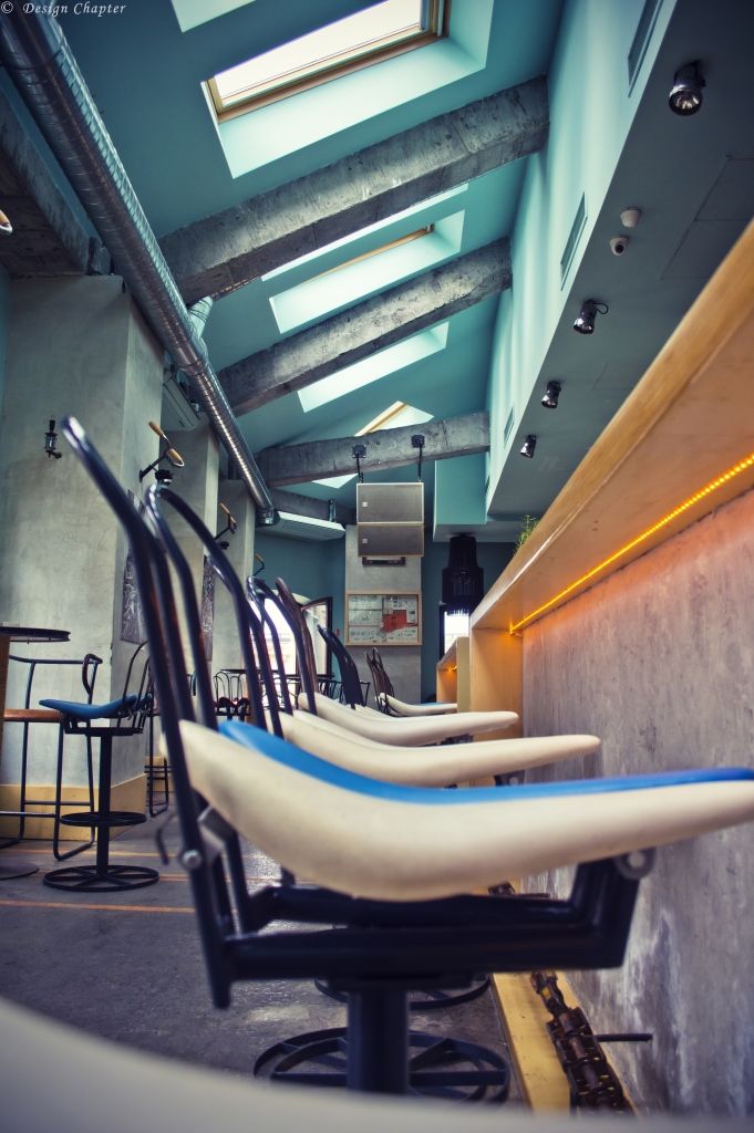 Pe pereti se observa din loc in loc afise interesante, tot cu trimitere la tematica barului (spre exemplu chitante de la fabrica Tohani puse in rama) .Ca sa mai „indulceasca” un pic aceasta atmosfera industriala, designerii au decis sa aduca si lemn in amenajare, astfel barul si blatul meselor sunt facute din lemn de plop.