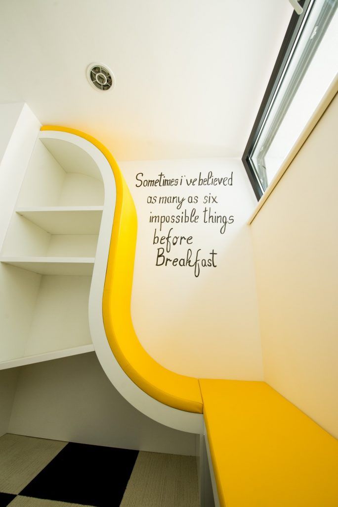 O parte din accesoriile decorative sunt creatii ale unor artisti locali. Abajururile din portelan sub forma de cesti au fost create de Madalina Teler, albumele foto din raftruile cafetariei au fost personalizate de catre Ioana Banica (Marele Deget Mare), ornamentele din origami au fost create de catre Paul Budan (Origamic), masuta din corian semnata Dragos Motica, iar unele dintre desenele de pe pereti au fost realizate de Alexandru Ciubotariu si Filip Letinu.