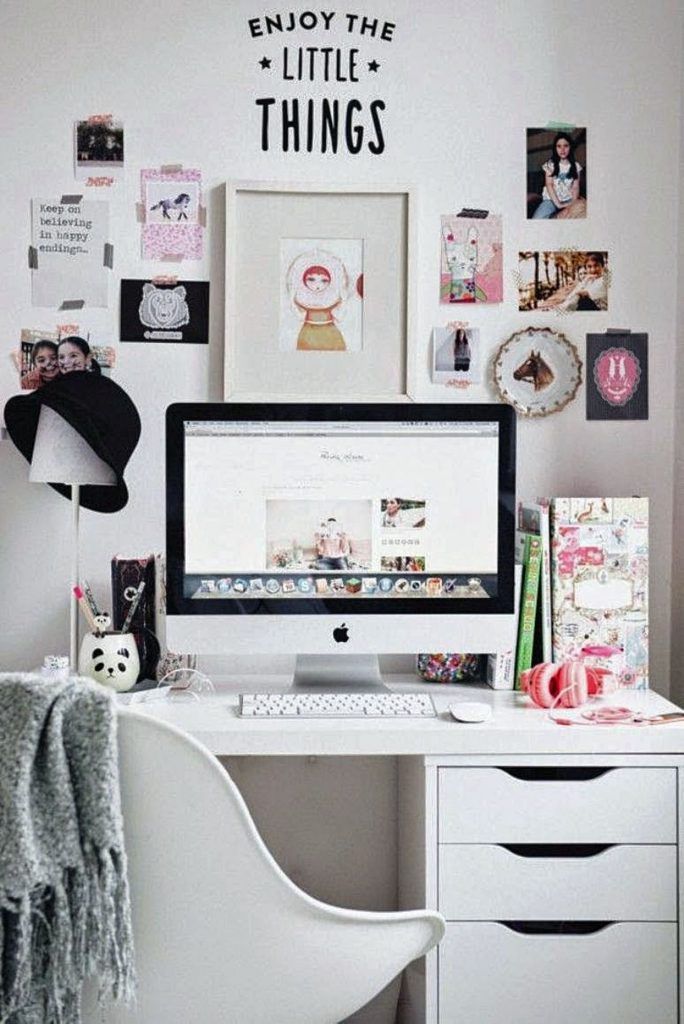 Exemplul 8 – Aceasta amenajare este potrivita pentru adolescenti. Biroul este in acelasi ton de culoare cu peretii, ofera suficiente spatii de stocare iar de restul decorului se poate ocupa chiar cel care va ocupa aceasta camera, lipind pe perete diverse imagini sau chiar un mic text motiviational.