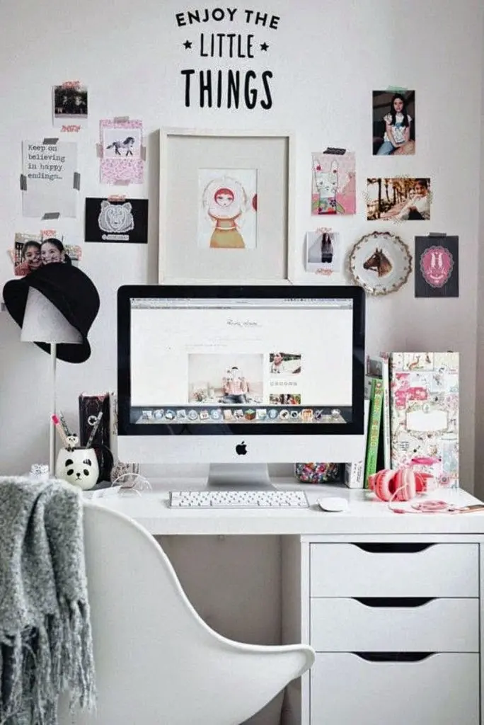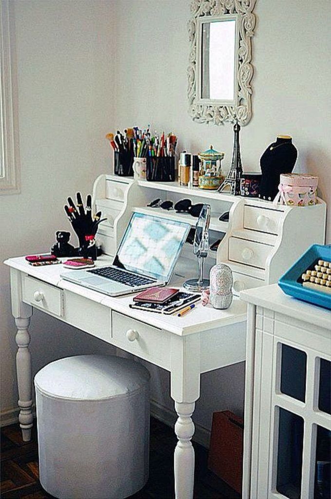 Exemplul 10 – Acest birou este ideal pentru o adolescenta. Pe langa designul deosebit, piesa de mobila care domina vizual spatiul ofera numeroase serate si rafturi pe care pot fi puse farduri, bijuterii si pensule.