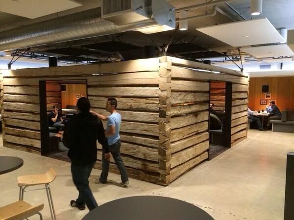 Citind acest anunt, cei de la Twitter au luat imediat decizia de a cumpara aceasta casuta seculara din lemn, iar cu ajutorul celor de la Olle Lundberg Design, au reusit sa o implementeze in interiorul biroului din San Francisco, salvand lemnul in intregime.