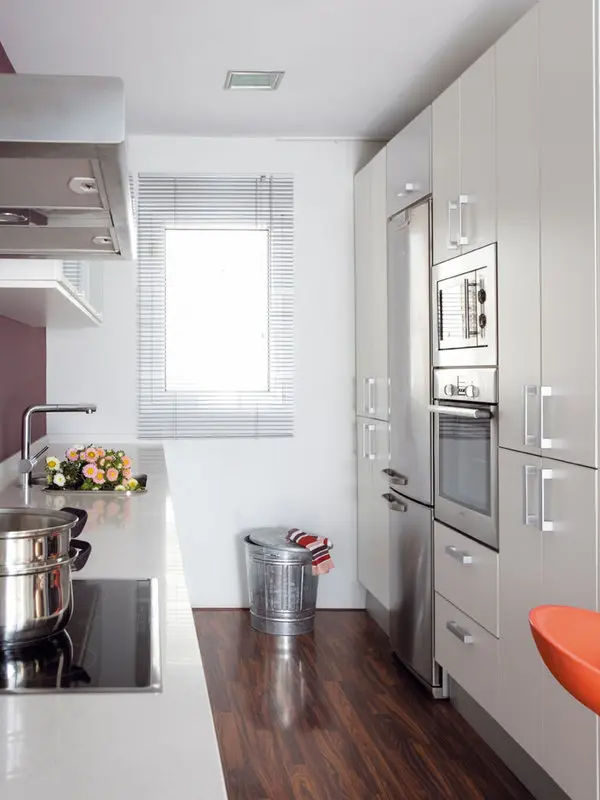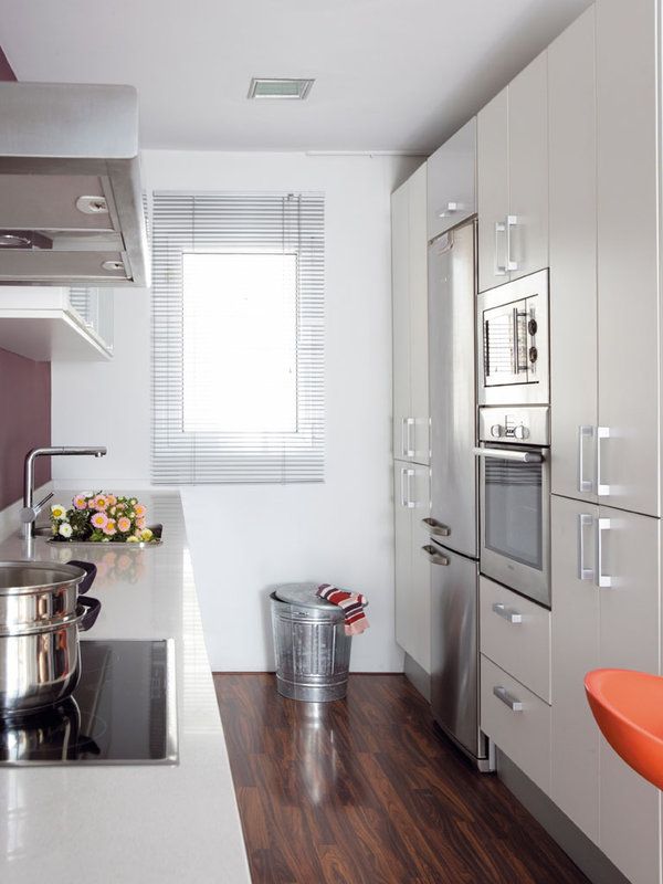 Pe o structura paralela, aceasta bucatarie asigura tot ce este necesar activitatilor de gatit. Modulele de mobilier de la podea pana in tavan asigura suficiente spatii de depozitare inclusiv pentru electrocasnice.