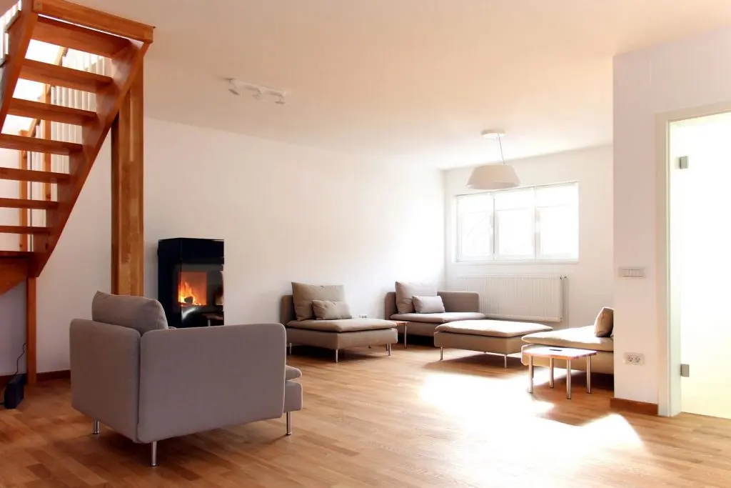 Deschide GaleriaParterul include un living generos, decorat simplu. In apropierea ferestrei se afla patru fotolii dispuse langa un semineu. Zona este luminata separat, inclusiv semineul are deasupra spoturi luminoase.
