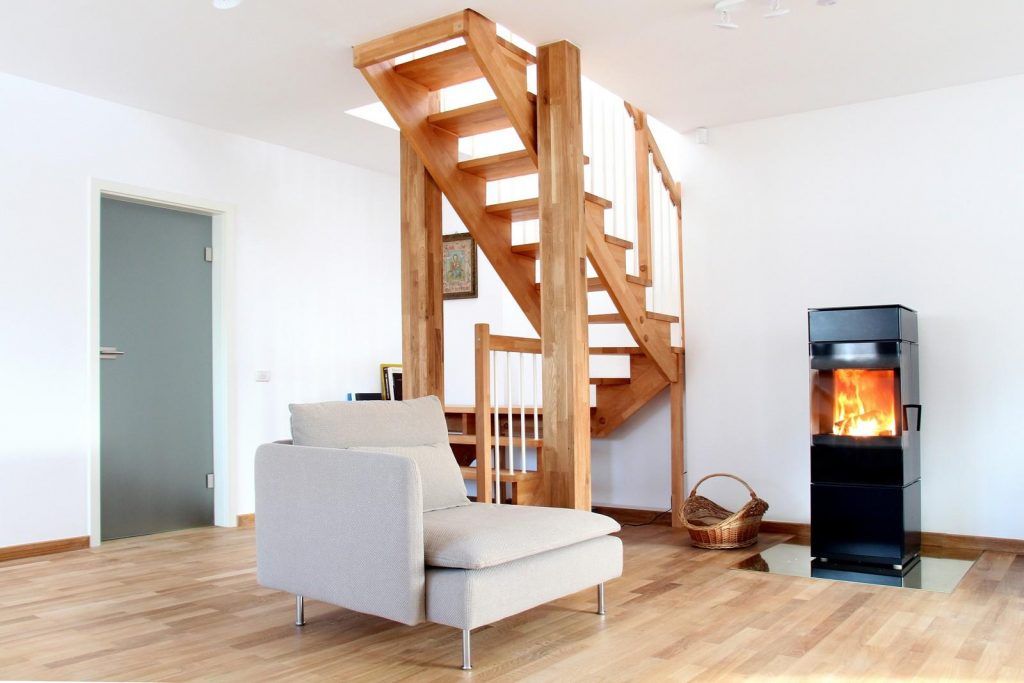 La baza scarii este improvizat o mini-biblioteca, treptele acesteia servind drept rafturi pentru carti.