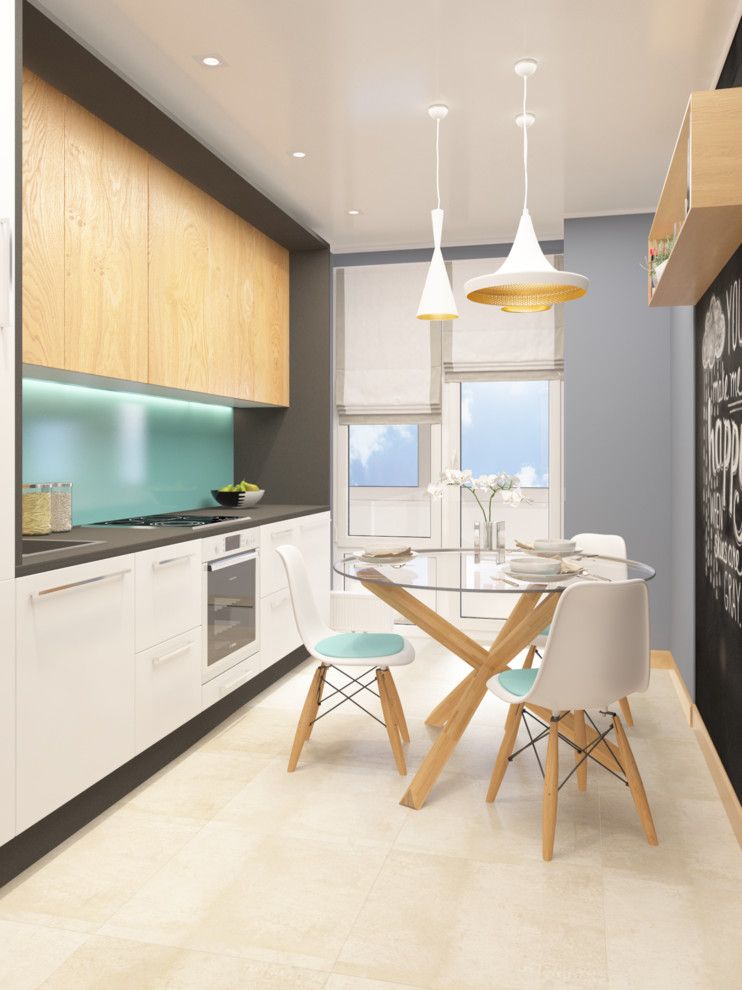 Ce face ca proiectul sa fie si mai interesant in ceea ce priveste zona de luat masa, este peretele pozitionat opus mobilierului, perete pe al carui mijloc se regaseste o tabla de scris.