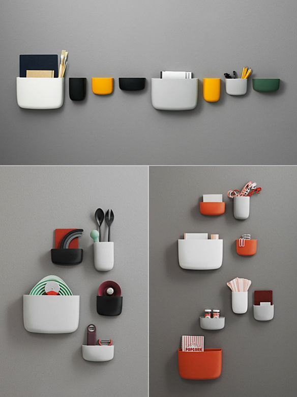 Aceste buzunare colorate sunt disponibile in patru dimensiuni si pot fi utile pentru numeroase intrebuintari. Se pot pune in ele obiecte de birotica, obiecte de bucatarie sau chiar mici ghivece cu flori. Ceea ce le fac niste solutii de stocare care pot fi montate in bucatarie, sufragerie sau chiar la birou. Nuantele in care sunt fabricate sunt extrem de echilibrate si de placute si pot fi integrate in multe stiluri moderne de design interior.