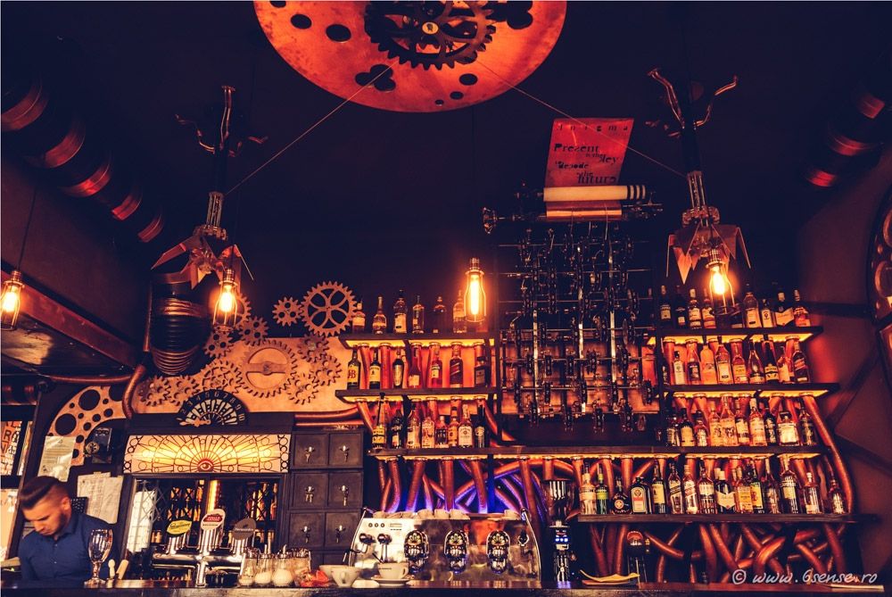 Instalatii care se misca, creand jocuri fantastice in penumbra, structuri steampunk integrate captivant intr-un decor coerent, care naste senzatii acestea sunt primele lucruri care te surprind la amenajarea Cafenelei Enigma.