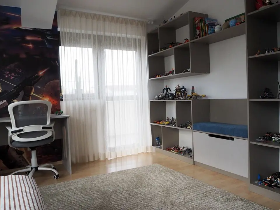 S-a tinut cont de faptul ca o amenajare de camera pentru copii trebuie sa fie functionala, confortabila, stimuland joaca dar si pofta de invatat, echilibrand spatiul de depozitare cu cel pentru odihna si, mai ales, punand in valoare personalitatea celor mici.