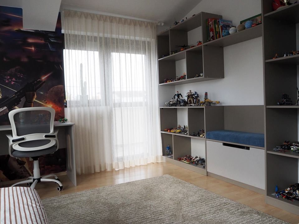 In felul acesta, copilul a avut o dubla satisfactie la finalizarea proiectului – o camera care i se potriveste si ocazia de a isi vedea visele transpuse in realitatea inconjuratoare. Arhitecta a definit impreuna cu parintii detalii despre functionalitate, cromatica, furnizori, toate pentru a se incadra in bugetul stabilit initial.