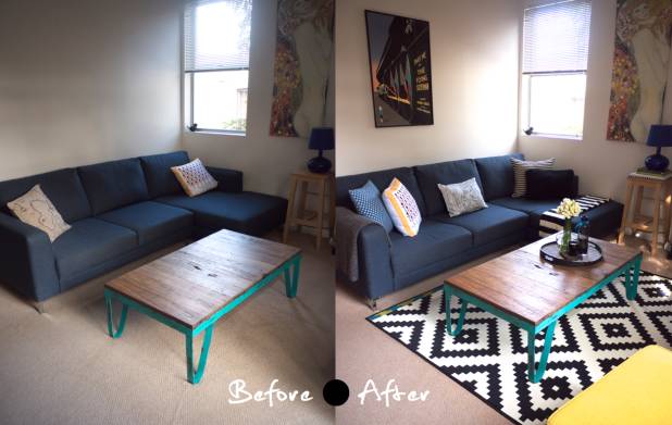 Inlocuirea caramidei cu lemnul a fost pentru camera din prima fotografie o idee foarte inspirata. De asemenea, camera de zi a prins viata cu un covor cu model indraznet, perne decorative cu diverse meotive si cu un tablou. La fel cum si colorarea dulapurilor va schimba cu desavarsire aspectul camerei intr-unul modern.
