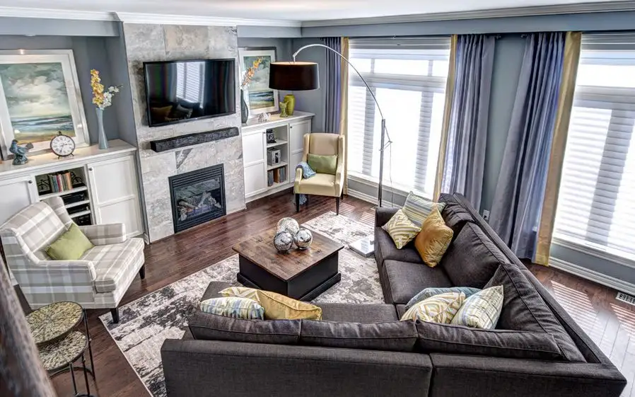 Atunci cand alegeti locul pentru acest tip decanapeain living, luati in calcul cateva aspecte importante: punctul focal al camerei, aspectul general al camerei si acolo unde este cazul, amplasarea semineului. Ca reper general, canapeaua vine in continuarea semineului, creand centrul de interes al livingului impreuna cu masuta de cafea si/sau alte elemente. Insa, locul ei poate varia.