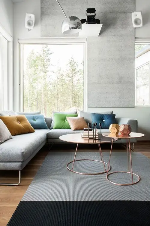 Canapelele coltar va ofera cadrul perfect pentru a instala o masuta de cafea. Puteti adauga si doua fotolii sau doar un scaun tip balansoar pentru a crea cadrul perfect unei zone de socializare si pentru a spori efectul de armonie vizuala.