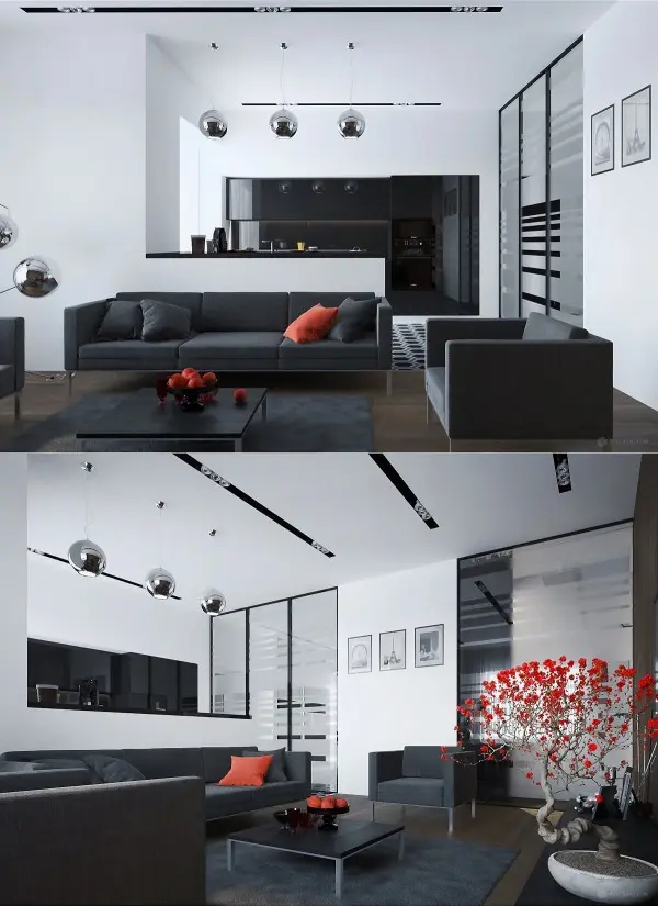 Deseori zona in care se afla canapeaua este punctul focal al unui living, fiind completata de cateva scaune sau fotolii tip scaune, uneori acestea fiind in contrast tocmai pentru a le sublinia diferenta. Masuta de cafea este deseori liantul intre cele doua elemente.
