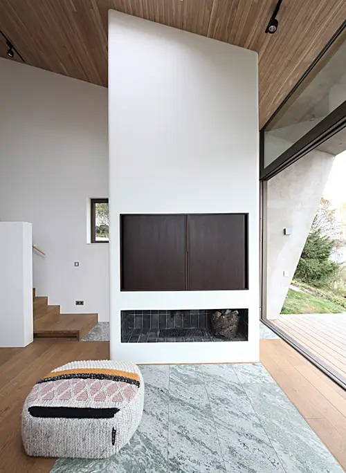 Pozitionarea ferestrei din living ofera lumina si catre spatiile mai intunecate, cum ar fi bucataria; amplasarea geamurilor oferind perspectiva de ansamblu catre privelistea minunata care inconjoara casa.