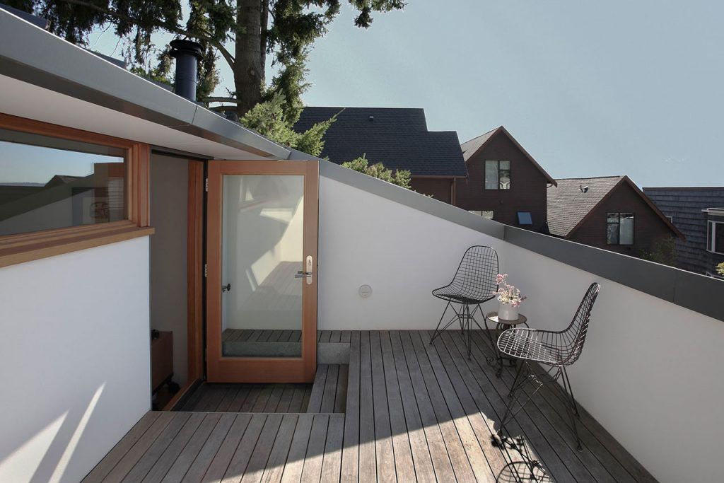 Deschide GaleriaAcoperisul ofera o portiune de terasa, special creata pentru ca proprietarii sa se poata bucura de imprejurimi. Chiar dorinta lor a fost aceea de a face din casa lor un refugiu dar care sa comunice cu exteriorul intr-o maniera fluenta si sa-i faca sa se simta confortabili.