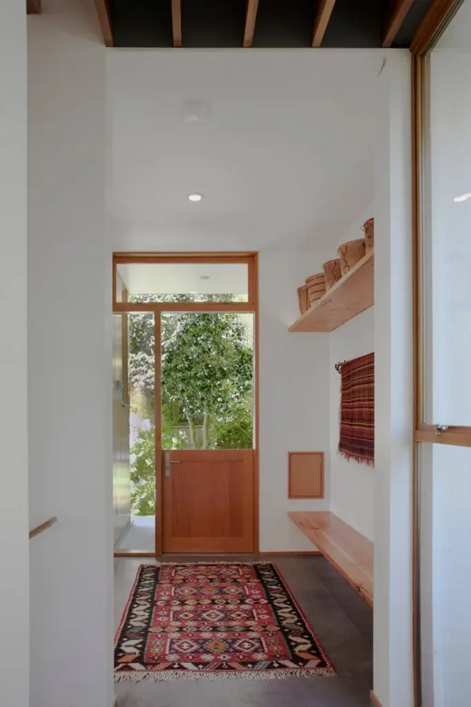 Interiorul abunda in forme din lemn asortat cu albul peretilor si al tavanului, precum si cu griuri calduroase care contribuie la crearea unui efect placut in intreaga casa.