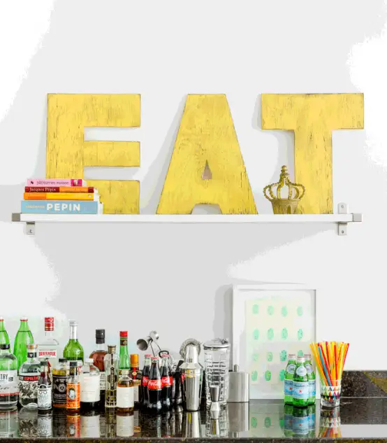 Cu siguranta, scaunele galbene din jurul insulei te vor inspira sa explorezi noi retete. Pe un fundal alb imaculat, accentele de galben ies in evidenta si te cuceresc de-a dreptul.