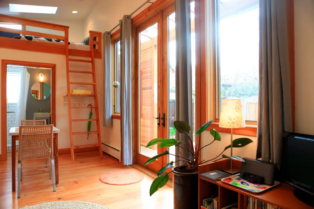 Deschide GaleriaRezultatul este aceasta incantatoare casuta eco-friendly de doar 40 de metri patrati, in care se afla un dormitor separat, o baie, o bucatarie combinata si cu o camera de zi cu un pozitionat undeva foarte aproape de tavan, deasupra unei incaperi in care a fost amenajata o mica baie.