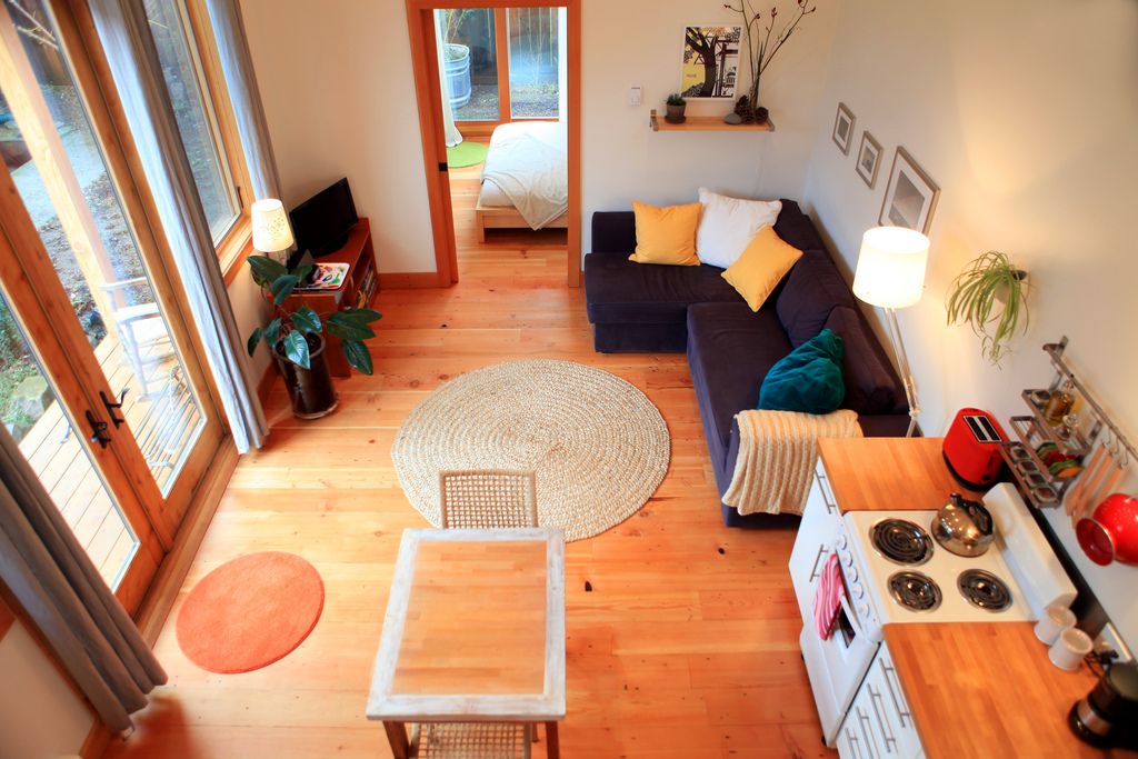 Deschide GaleriaRezultatul este aceasta incantatoare casuta eco-friendly de doar 40 de metri patrati, in care se afla un dormitor separat, o baie, o bucatarie combinata si cu o camera de zi cu un pozitionat undeva foarte aproape de tavan, deasupra unei incaperi in care a fost amenajata o mica baie.
