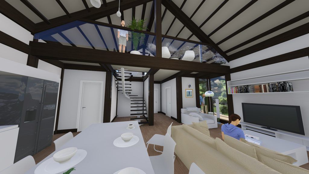 Totodata, ne-am dorit o adaptare a casei la nevoile actuale ale noii generatii: o locuinta moderna, design diferit, costuri de intretinere mici, tehnologizata si cel mai important- care sa aiba un mediu interior sanatos (lumina naturala, aer curat).