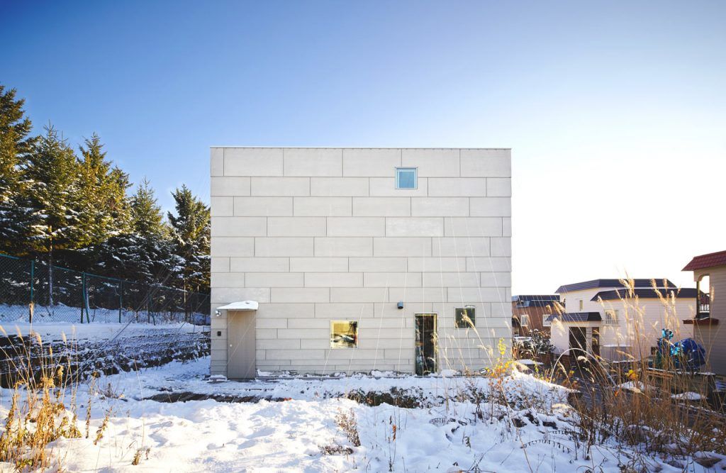 Deschide GaleriaForma originala a exteriorului prezinta cateva aspecte prin care s-a dorit animarea elementele simple. Astfel, panourile albe care alcatuiesc fatada casei au forme diferite, marimea lor scazand pe masura ce coboara spre partea inferioara a constructiei. Firele care pornesc de pe acoperis au fost fixate in dorinta ca plantele agatatoare sa se fixeze si sa creasca rotindu-se in jurul firelor pentru a asigura o zona de tampon intre interiorul si exteriorul casei, minimalizand poluarea sau zgomotul.