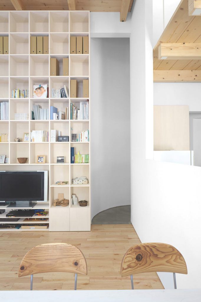 Asocierea lemnului cu albul este trasatura predominanta a decorului, reliefand o structura curata, simpla dar placuta si primitoare chiar jucausa. S-a mizat pe un interior tip open space cu suficiente spatii de depozitare si o biblioteca inalta din tavan pana in podea. Designul minimalist predomina, liniile drepte imbinandu-se armonios cu spiralele create de curbura scarilor.