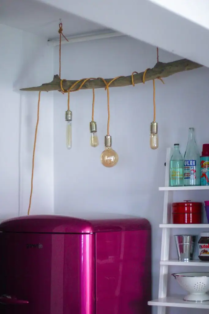 Un corp de iluminat deosebit este realizat din becuri retro de la Hornbach infasurate pe un bat (adus dintr-o excursie tocmai de la Cazanele Dunarii).