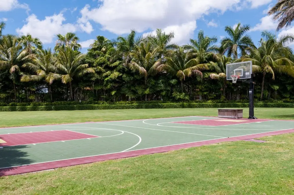 Exteriorul casei este amenajat in aceeasi maniera luxoasa, fiind dotat cu toate utilitatile necesare, de la o piscina foarte generoasa, cu mini bar incorporat, pana la un teren de baschet in marime reala.