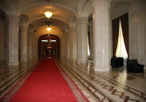 Scarile spectaculoase din aceasta aripa a Palatului Parlamentului, zona refacuta de 5 ori, au trepte cu inaltimea de 14-16 cm, foarte joase, construite asa la indicatiile conducatorului care nu dorea sa oboseasca urcandu-le.