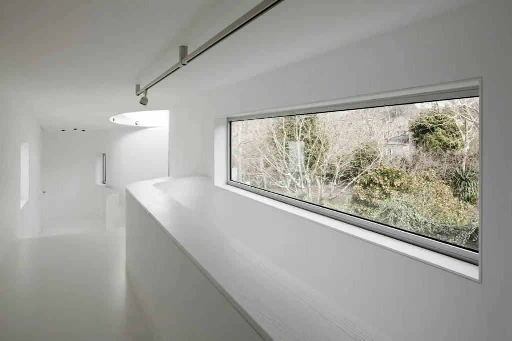 Albul si geamurile din podea pana in tavan domina intregul peisaj