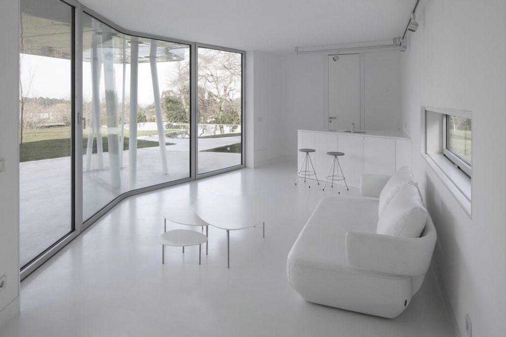 Albul si geamurile din podea pana in tavan domina intregul peisaj