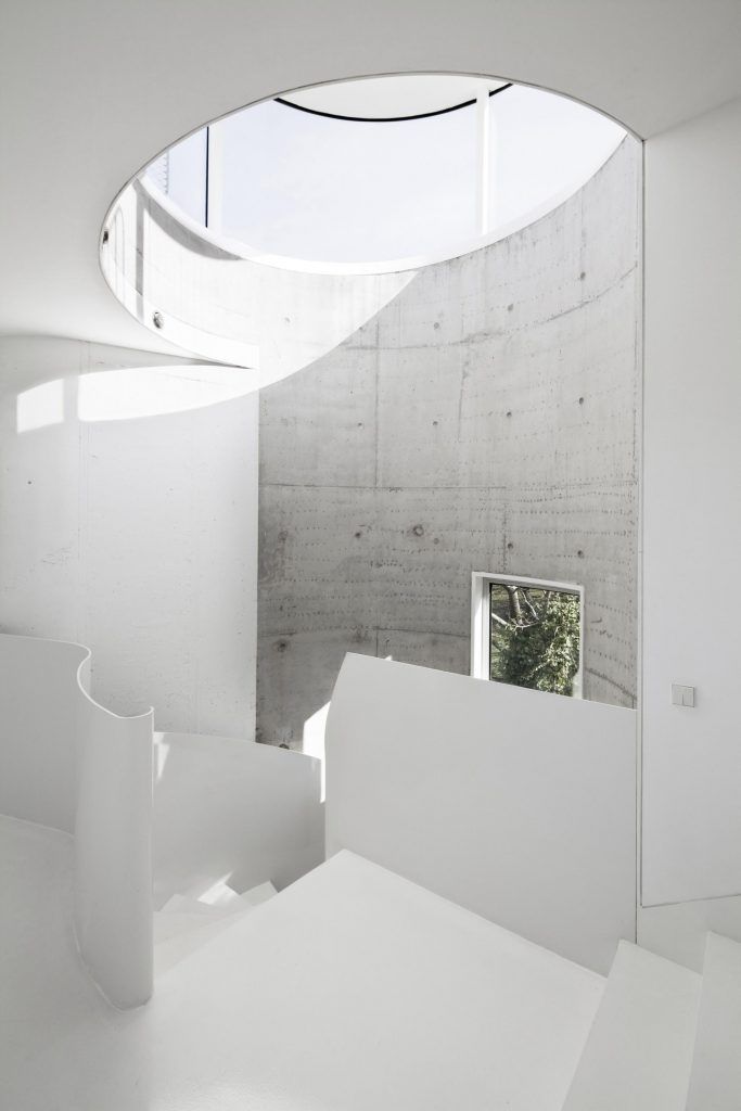 Geamurile circulare din tavan asigura luminozitatea holurilor